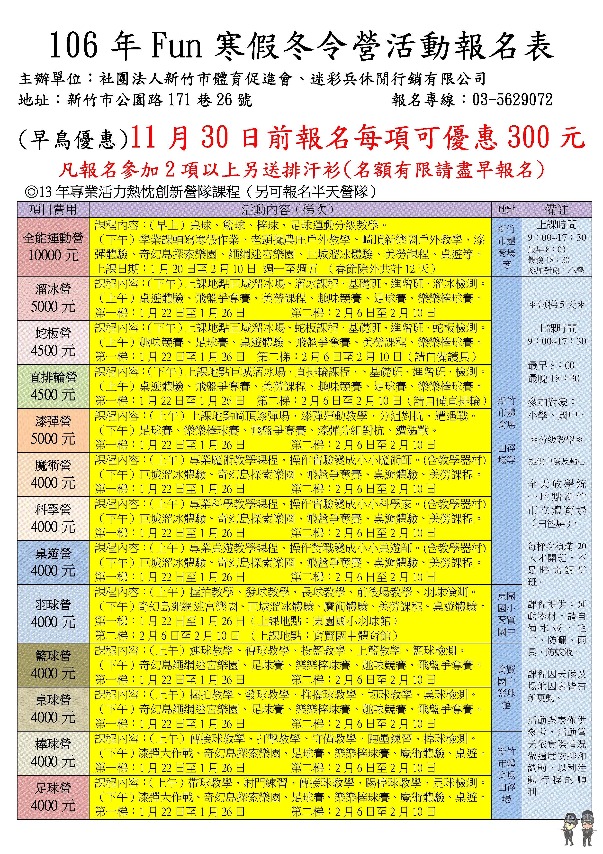 106年Fun寒假冬令營活動!!早鳥優惠~~~